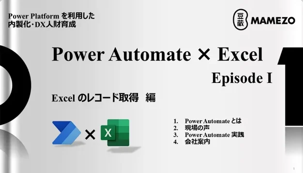 - Power Platform を利用した内製化・DX人財育成 Power Automate × Excel 【Episode Ⅰ】Excel のレコード取得 編のご紹介