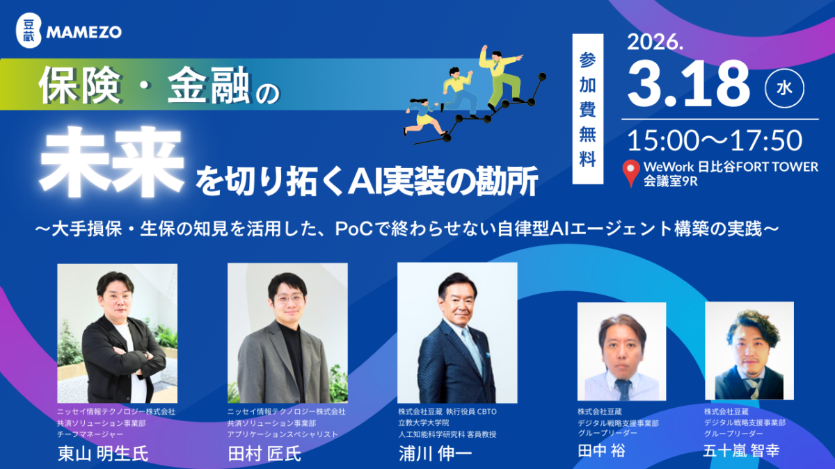 豆蔵の知性は、工学的なアプローチで顧客と共に未来を設計し、産業構造の進化と社会課題の解決に貢献することで持続可能な価値と成長を創出します