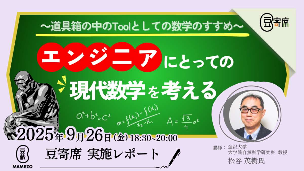 • 豆蔵技術イベント!第46回『エンジニアにとっての現代数学を考える – 道具箱の中のツールとしての数学の勧め』開催報告をアップいたしました